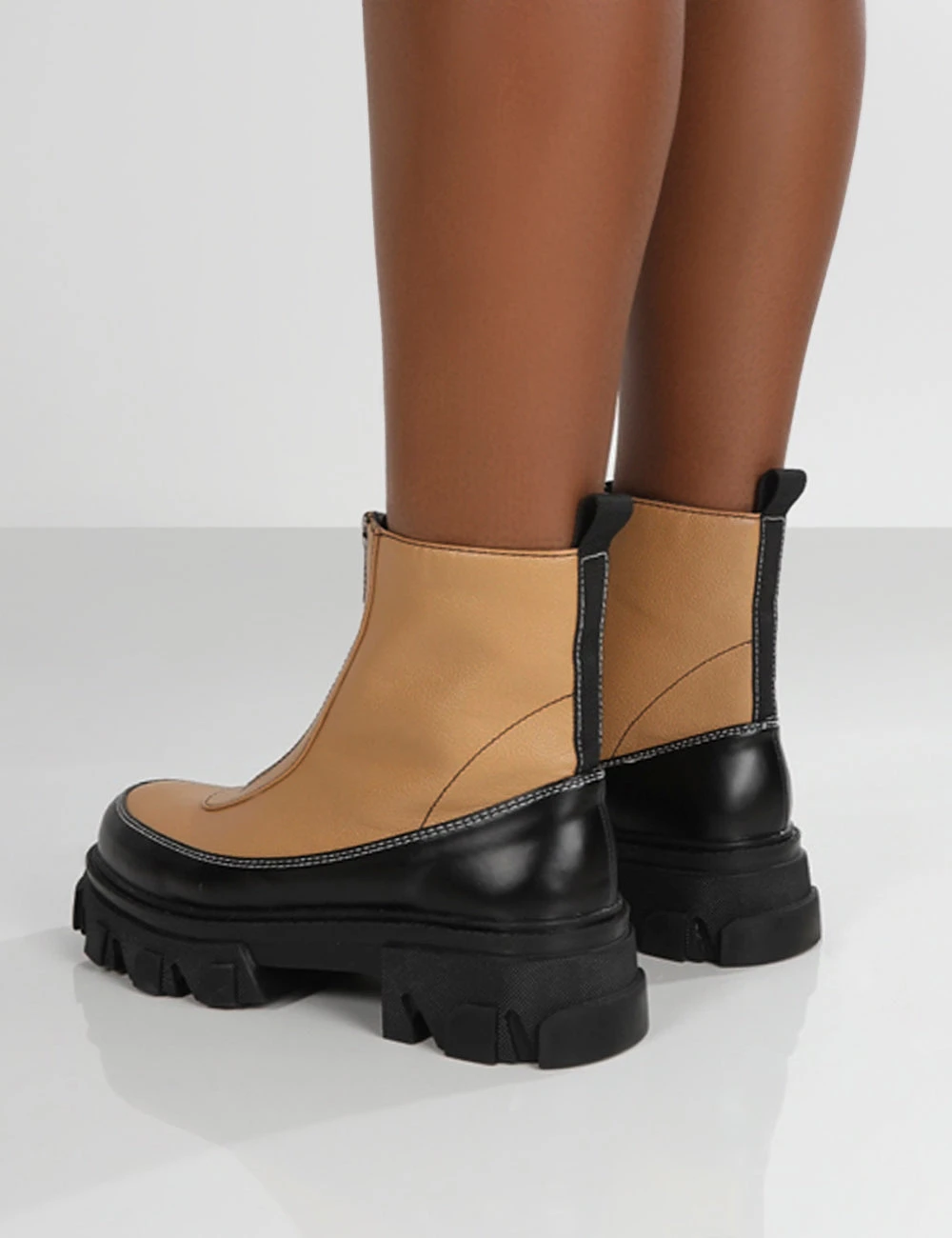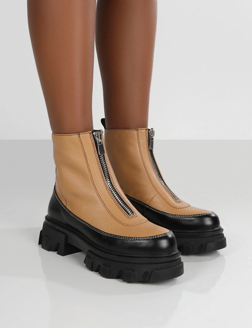 Direction features a chunky platform sole, contrast stitching and zip front detailing. What is not to love?