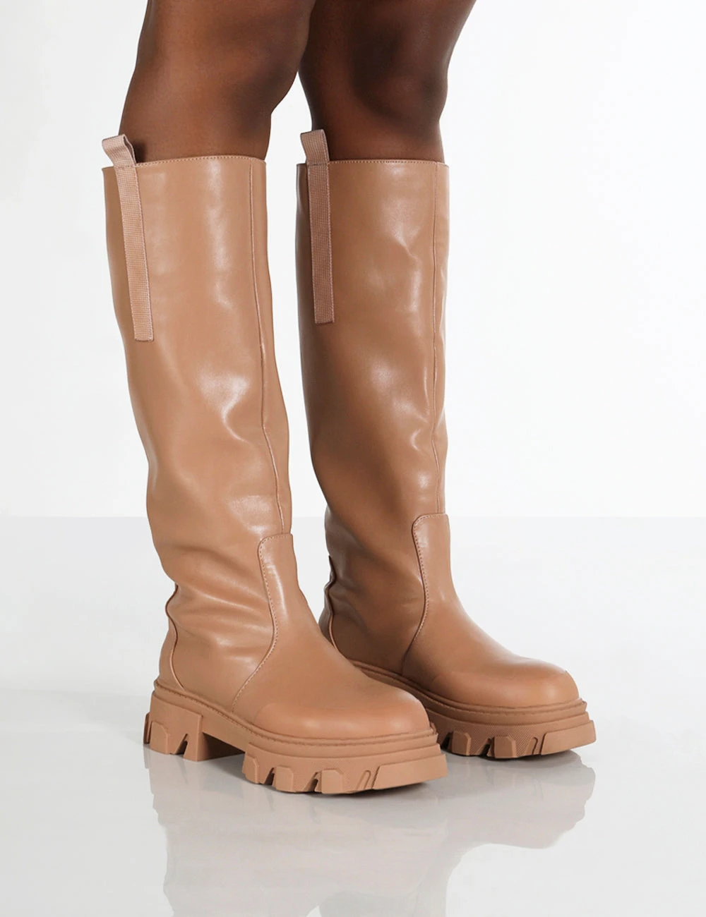 Genius features a chunky sole and a knee-high design. These boots are perfect for this season.