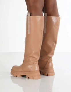 Genius Wide Fit Black Box Patent Knee High Chunky Sole Boots