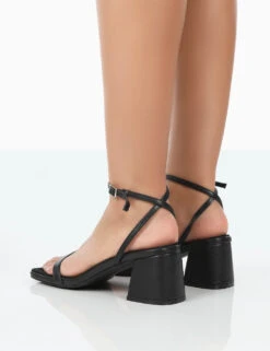 Lane Wide Fit Black Pu Strappy Mid Block Heeled Sandals